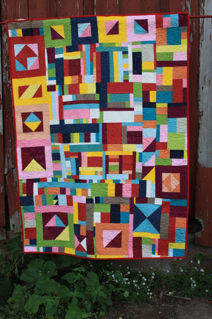 If you already read my Sampler Quilt post this is a little addition to the story. Each block of the Sampler Quilt had off cuts which I just kept putting back in the tote. Eventually I started to sew them together. This is what those off cuts became.