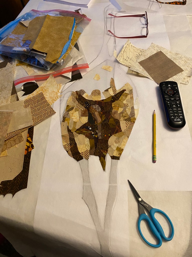 As I’m sure you have noticed in this blog, I enjoy making collage quilts. I met Emily Taylor at the Houston Quilt Show in 2019 and bought her book and one pattern. Since then I have avidly followed her on social media and joined both her Collage Quilter group and Collage Quilter Academy group on Facebook.