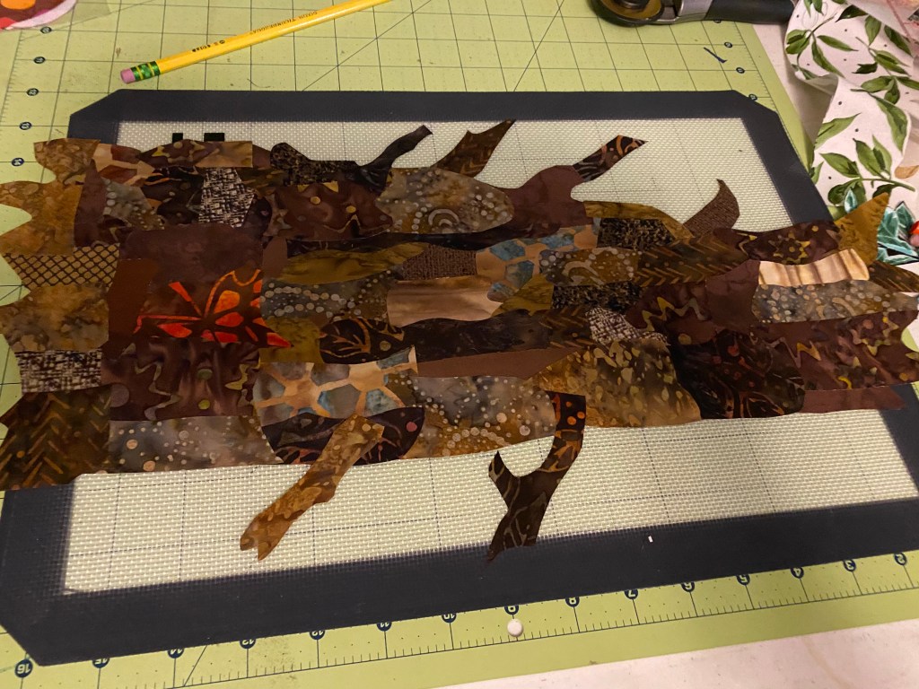 I’m creating a log for the lake bottom on my small silicone mat. As you can see the hangover, I should have used the big mat.