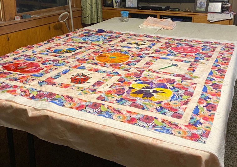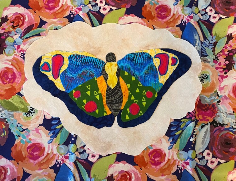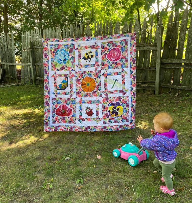 I loved the butterfly within the flowers, but I thought the butterfly needed to be outlined. Hmm. Maybe my indecision was why it was taking me so long to make this quilt.