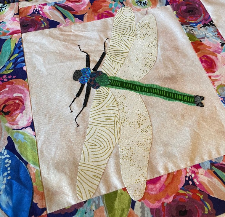 I cannot tell you how many times I changed thread colors, but it was a bunch. As I plan to use this quilt as a quilt I made sure to securely stitch each collage. I absolutely love the wings on the dragonfly.