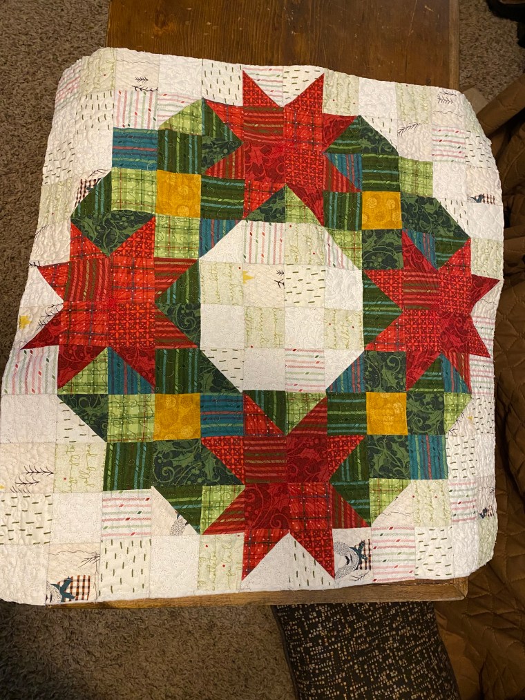 This is my only completed project in months. Unfortunately I never took a photo of it after I got the binding on and before I gave it away.