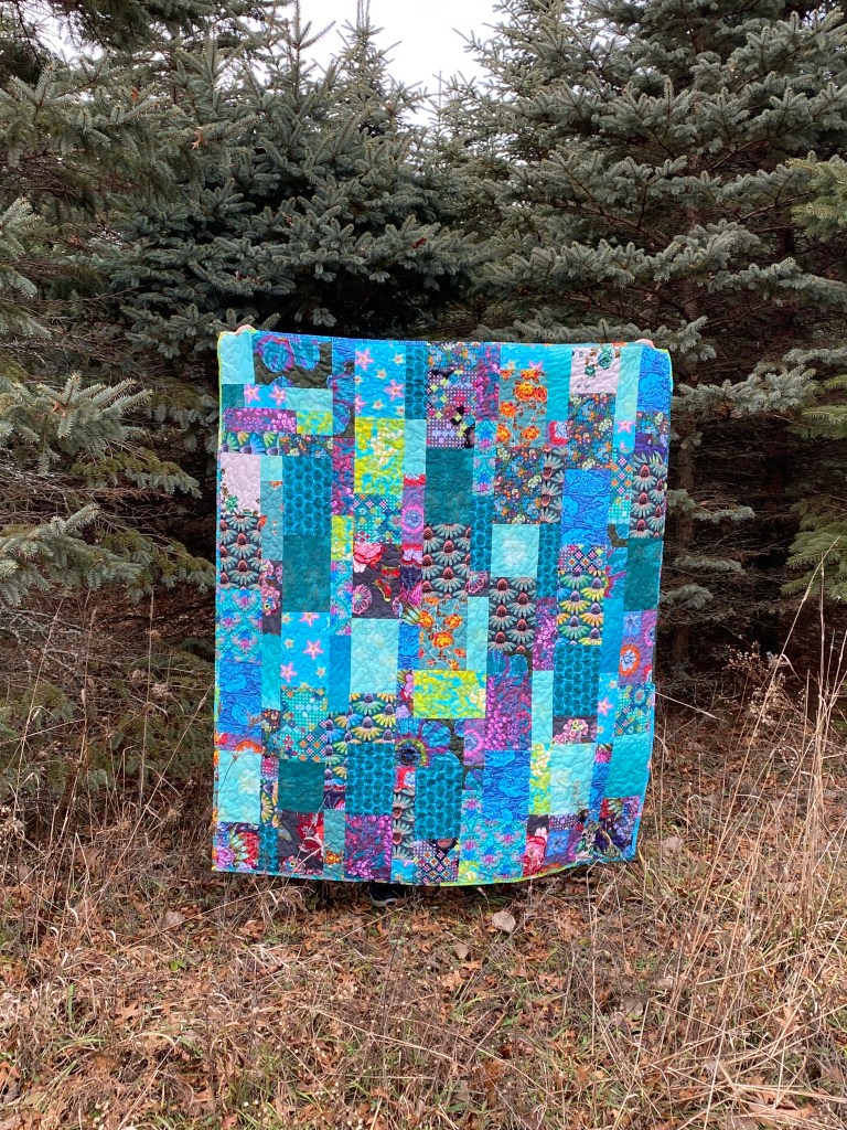 I love this Anna Maria Horner fabric. Sure hope my grandson’s girlfriend does too. Just like the other quilts on this post, it has Cuddle fabric on the back.