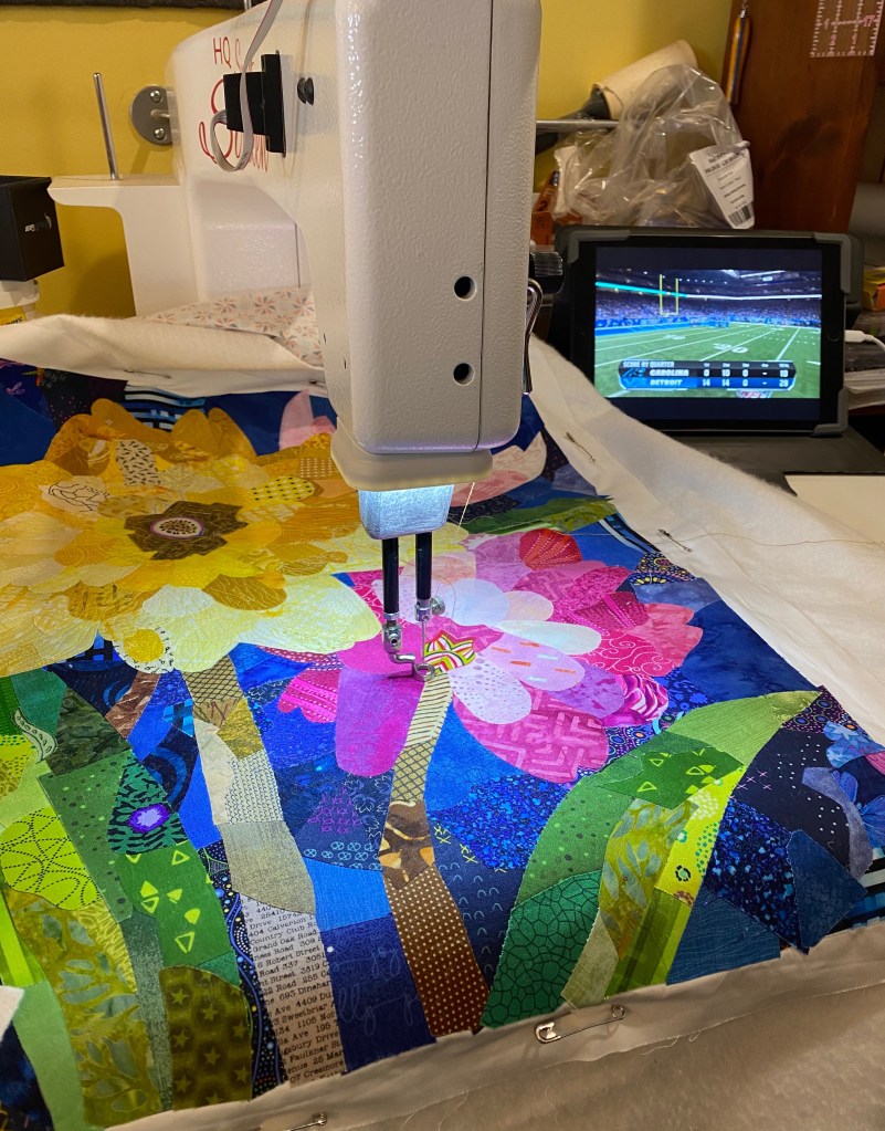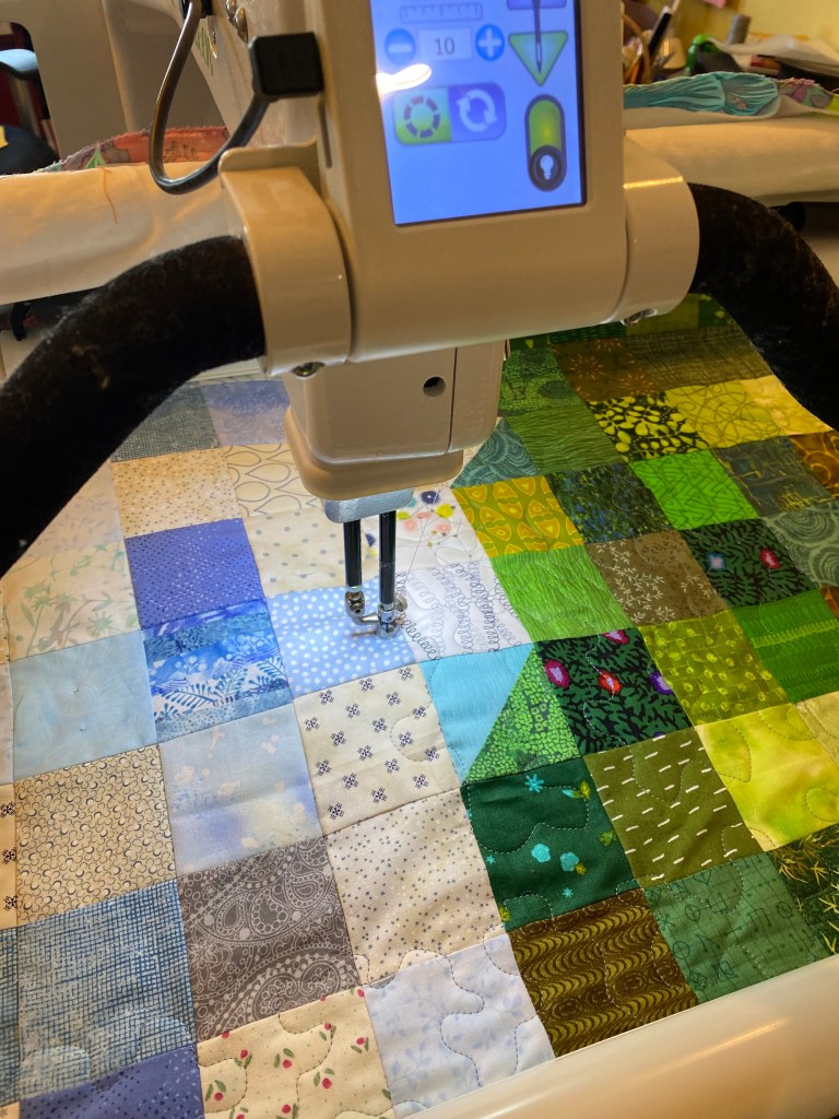 I started quilting on my HandiQuilter Sweet Sixteen. Lots of thread changes.