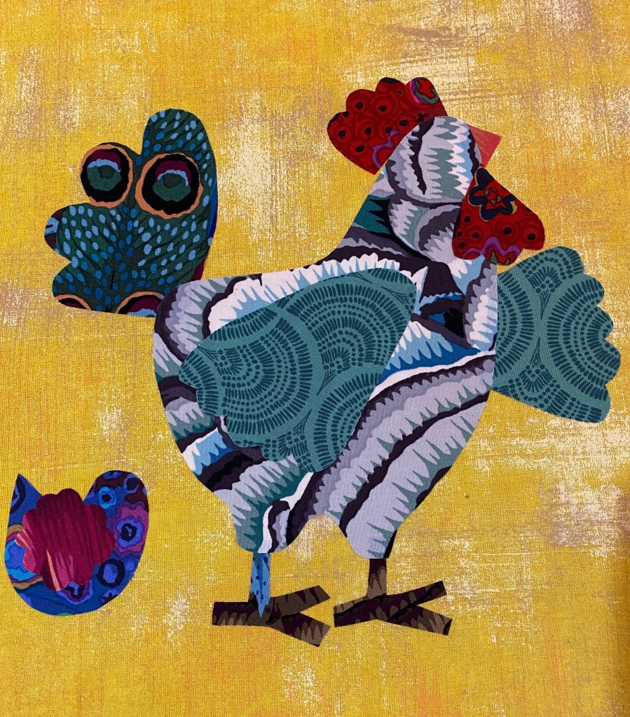 Once I picked the background, picking out which fabrics to use for the chickens was easy.