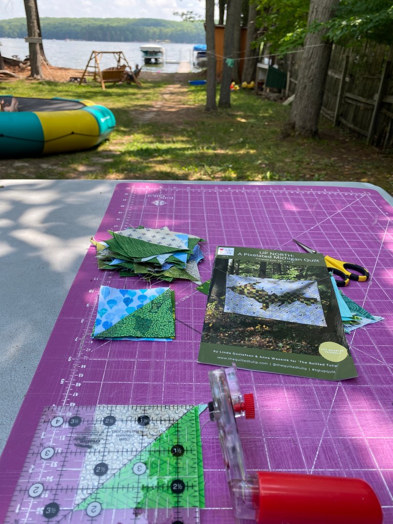 Lots of three inch blocks cut and and a few half square triangles. I’m ready to put it together.